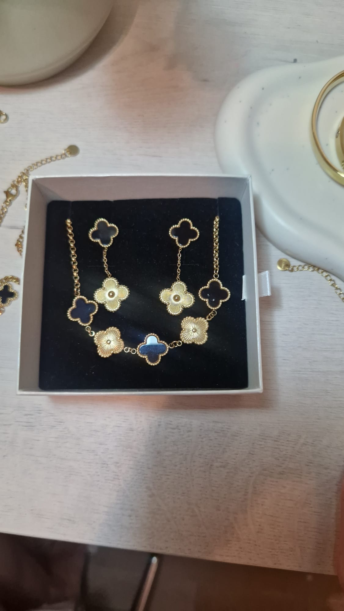 "Lo compré para mi y mis tres mejores amigas con la oferta y me llegó en menos de 24 horas 👍y eso que era sábado...cuando lo abrí no me lo podía creer, es que es súper bonito todo. Venia en una caja preciosa con un lazo súper bonito, luego dos cajitas más y otros descuentos. Mis amigas casi lloran. "
